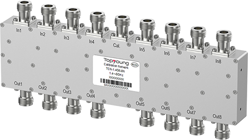 校准网络是一个多进多出的多通道无源器件,每个通道会耦合一定分量的信号到校准端口。校准网络可模拟 8 端口智能化天线在空气中传导,校准口的信号反馈给基站,该产品常用与 8 端口 RRU 在传导实验室中用来模拟天线的 CAL 反馈,以便于RRU能够正常输出载波。